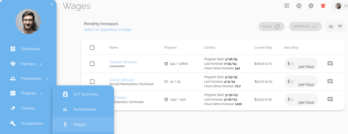 Learn how to review apprentices in need of wage increases and approve, deny, and comment on those increases.