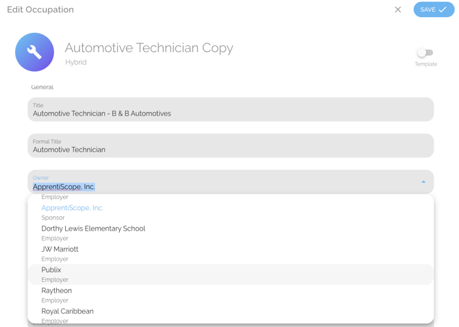 - Edit the Occupation's Owner to be the Employer who will be using this version of the occupation.