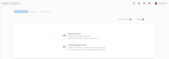 If you want a partner user to have immediate access to Apprentiscope, you will need to invite them to create their own authenticated account. Once the steps below are completed, the user will receive an email from ApprentiScope with a link to create their account. If a partner user already has a managed account skip to instructions below for converting their account to authenticated.