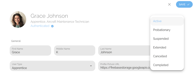 2) Profile Details Status Edit - Use to edit one participant's status on their profile details page