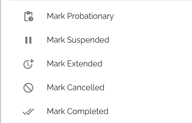 - When a participant's status is change to suspended, cancelled, or completed, their account will be removed from the active Participant list. It can still be viewed and managed by filtering the participant list and selecting a different status list to view.